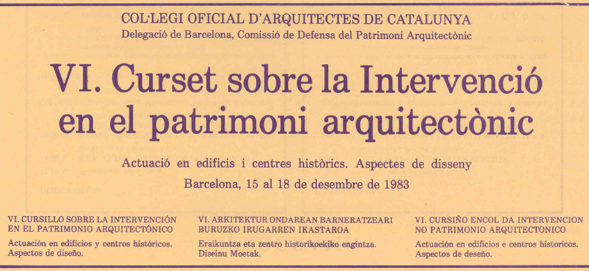 VI Curset sobre la intervenció en el patrimoni arquitectònic. Actuació en edificis i centres històrics. Aspectes de disseny [1]