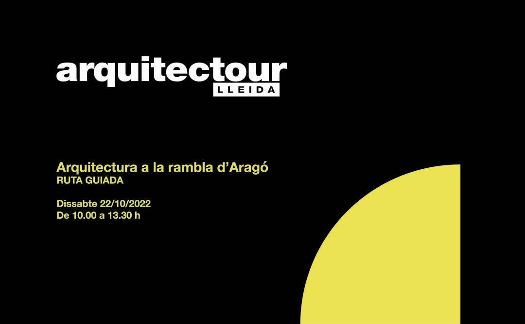 El proper dissabte 22 d’octubre, de 10.00 a 13.30 hores, tindrà lloc la vuitena edició de l’Arquitectour Lleida, organitzada per la Demarcació de Lleida del Col·legi d’Arquitectes de Catalunya (COAC). Enguany, la visita guiada se centrarà en un eix emblemàtic de la ciutat: la rambla d’Aragó de Lleida. Durant la ruta es visitaran quatre edificis: el Rectorat de la Universitat de Lleida, antic Seminari; la Biblioteca Pública, antiga Casa de la Maternitat; els Serveis Territorials del Departament de Cultura, antic Montepío, i les Cases Balasch o Cases Noves.