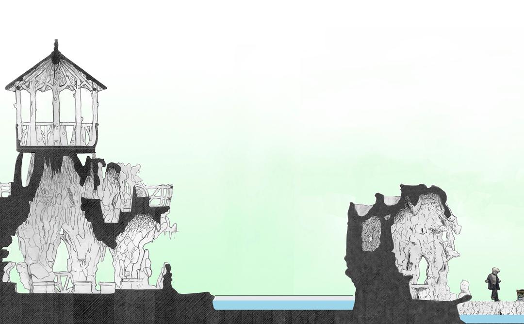 Esta construcción, que no tuvo autoría determinada durante más de un siglo, fue construida con la participación, como peones, de los pacientes del centro hospitalario. Este jardín, repleto de simbología del texto del Apocalipsis de San Juan, y dedicado a la Virgen de Lourdes, sintoniza con el universo arquitectónico y espiritual de Antoni Gaudí. También el pensamiento de Jacinto Verdaguer, vinculado personalmente e ideológicamente a Gaudí, se hace presente en este enigmático espacio.