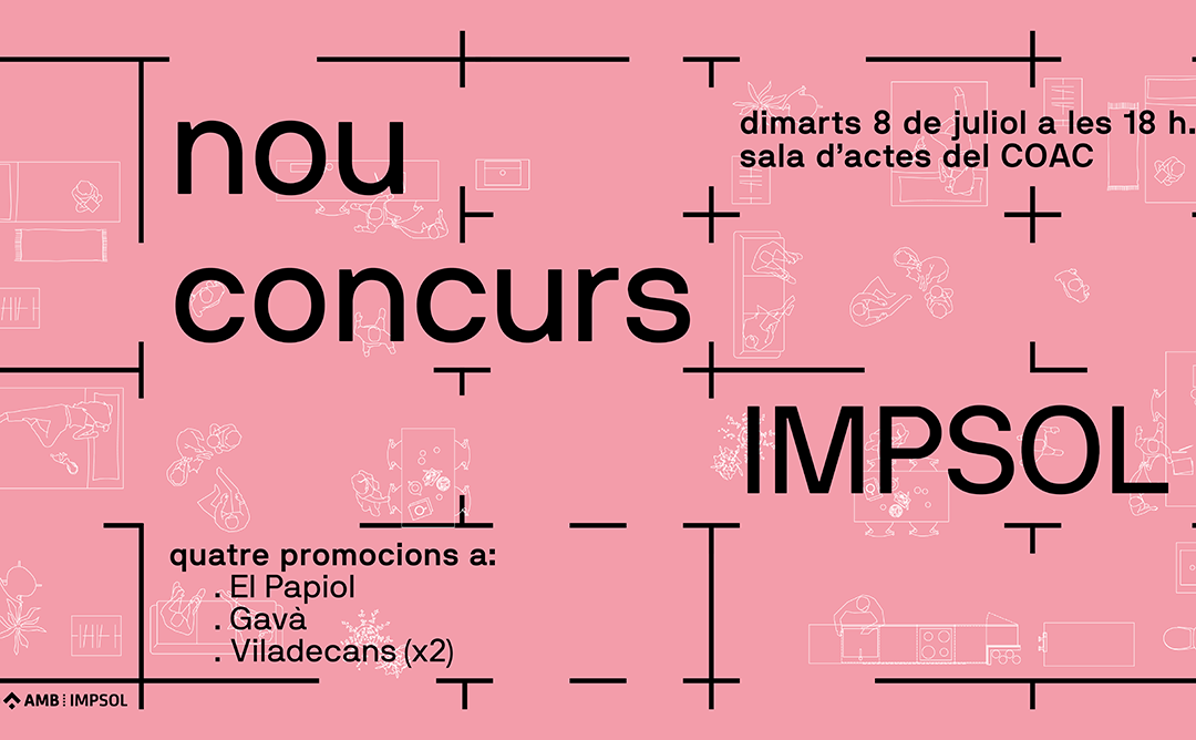 El proper dimarts 8 de juliol a les 18 h, es presentarà a la seu del COAC el Concurs per a la redacció de projectes de diverses promocions d’habitatges amb protecció oficial, licitat per l’IMPSOL.