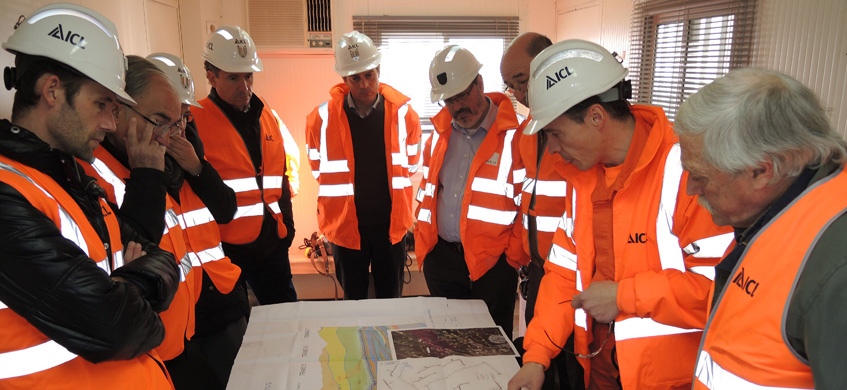 La visita a la rampa és espectacular, amb les dues terceres parts ja executades, és a dir 3 km, i una profunditat de 600 m. En la visita d’obra es va poder comentar amb els tècnics responsables el repte que representa la construcció d’aquesta rampa, amb forta pendent i travessant materials molt diversos, amb falles de ruptura geològica i filtracions d’aigua en molts punts, fet que la fa una de les obres d’enginyeria més complexes que s’estan duent a terme en aquests moments a Europa. Malgrat les dificultats tècniques, el ritme avança amb un promig de 3,5 metres diaris, i una secció mitjana de túnel de 42 m2.