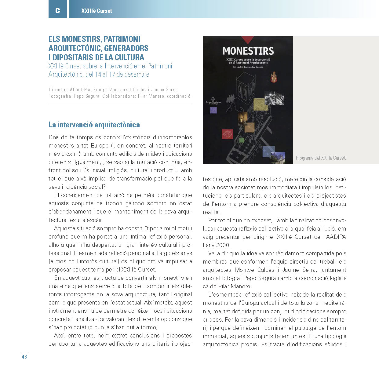 48. XXIIIè CURSET. ELS MONESTIRS, PATRIMONI ARQUITECTÒNIC, GENERADORS I DIPOSITARIS DE LA CULTURA