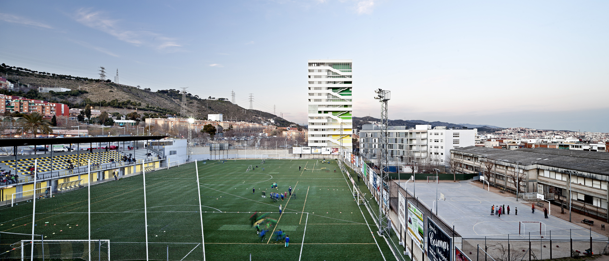 construcció de la Rda. de Dalt el 1992. Compartiran el mateix solar un nou centre esportiu, una residència d’avis i la Torre Júlia, (edifici d’habitatges tutelats per a gent gran), generant al seu voltant un espai públic que s’estén des del carrer fins a definir una nova plaça pública que donarà accés als equipaments.