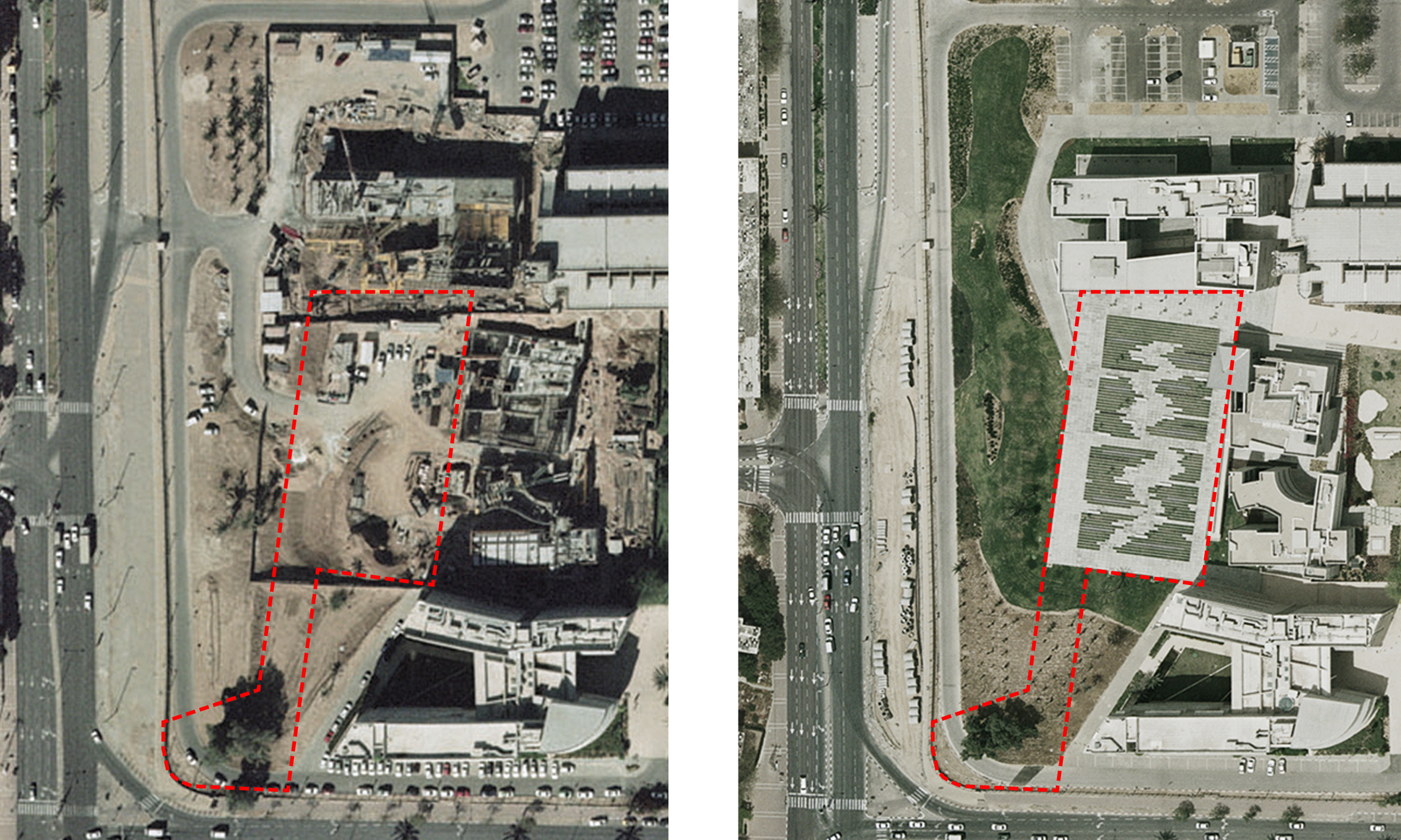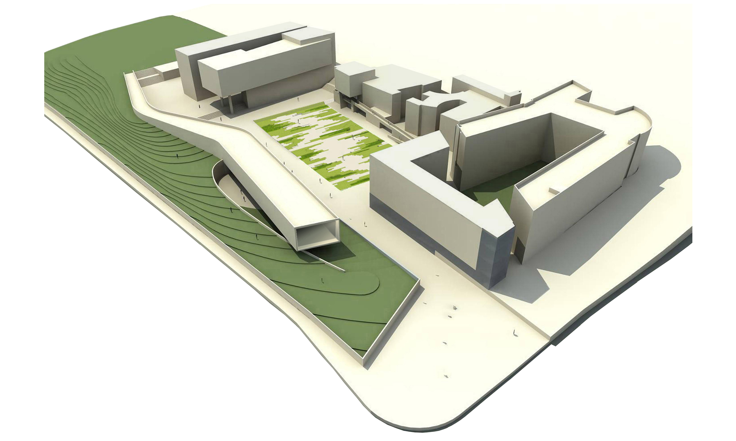 Ben-Gurion University of the Negev is a developing university campus in Beer-Sheva, a city in Israel’s south. Since the university plays an important role in the city both as an employer and as a center of culture, pedestrian access to it is very important. Deichmann Square and the University Gallery next to it have been planned as a single complex, as part of the project of building the university’s façade facing Beer-Sheva’s main avenue. The square is encompassed on three sides by existing three to four-story academic buildings and the planned two-story Gallery. The oblong area between the buildings encompassing the square measures 47x86 meters, and the square inside this area measures 34x70 meters. The buildings around the square contain activities that are intended to serve the city’s community and to acquaint it with the university’s life, and the square has been planned as part of a new entrance to the campus in order to strengthen the connection between the campus and the city.