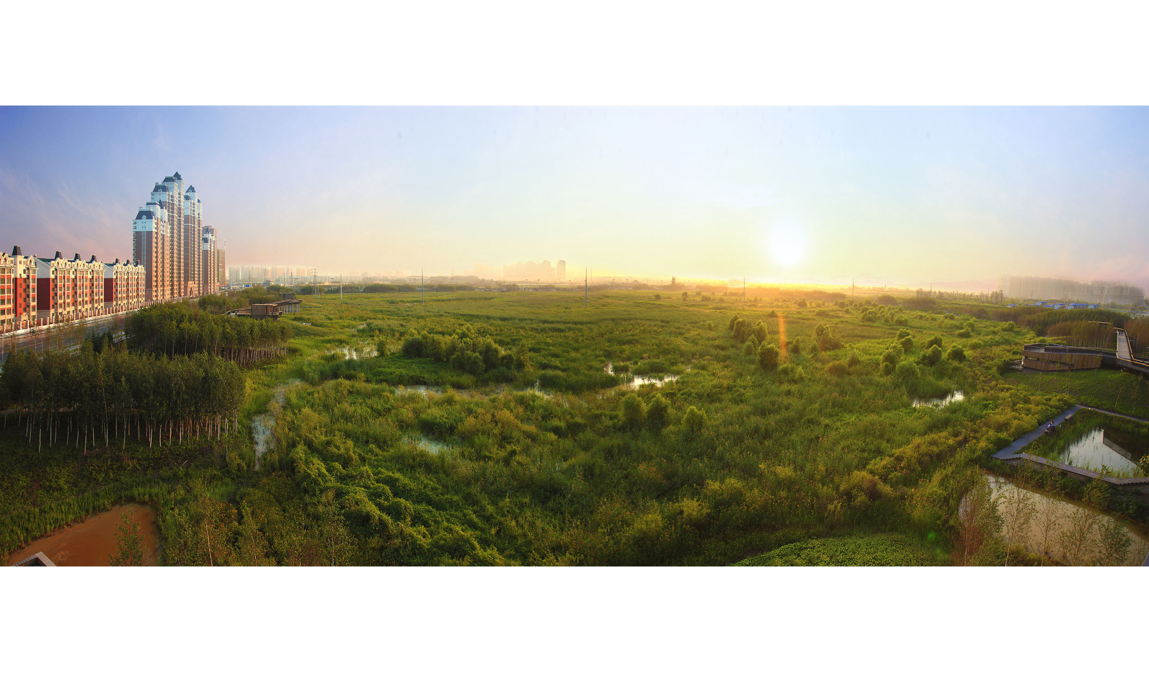 In mid-2009, the landscape architect was commissioned to design a park of 34 hectares right in the middle of Qunli New Town at the eastern outskirts of Haerbin in northern China. More than one third of a million people are expected to live there. Waterlogging has occurred frequently in the past, while at the same time the ground water table continues to drop due to its overuse. The landscape architect proposed to transform the area into an urban stormwater park that will provide multiple ecosystems services.
