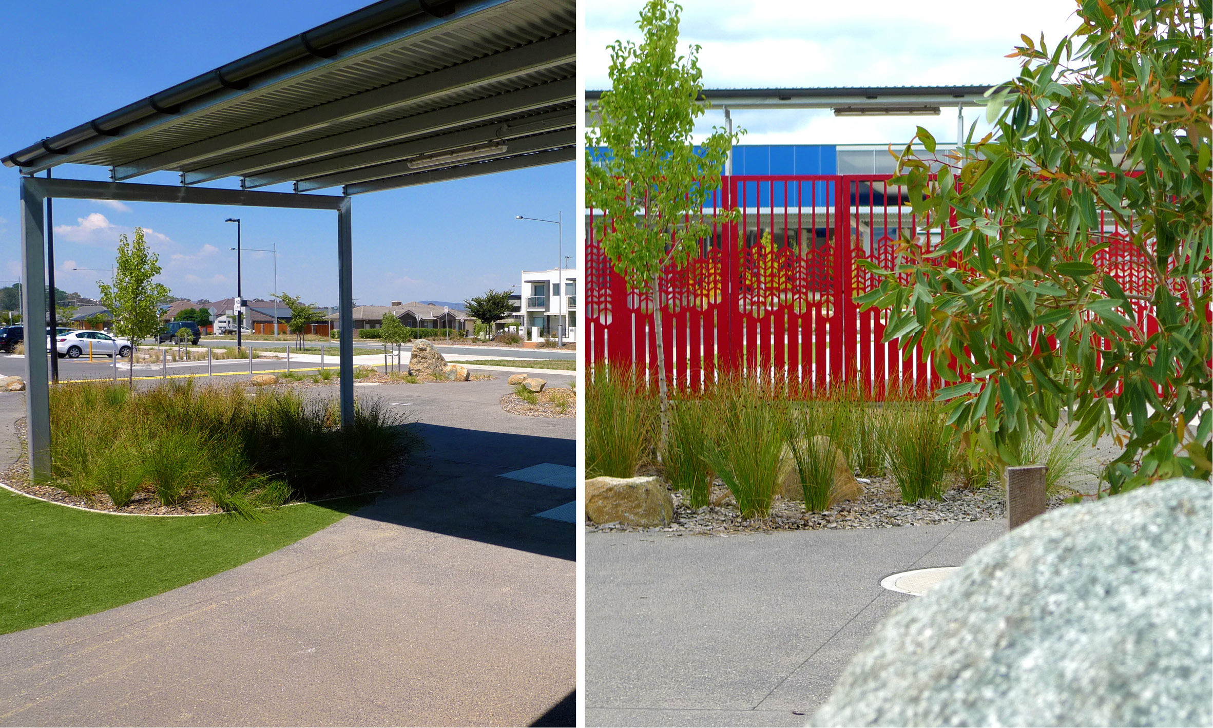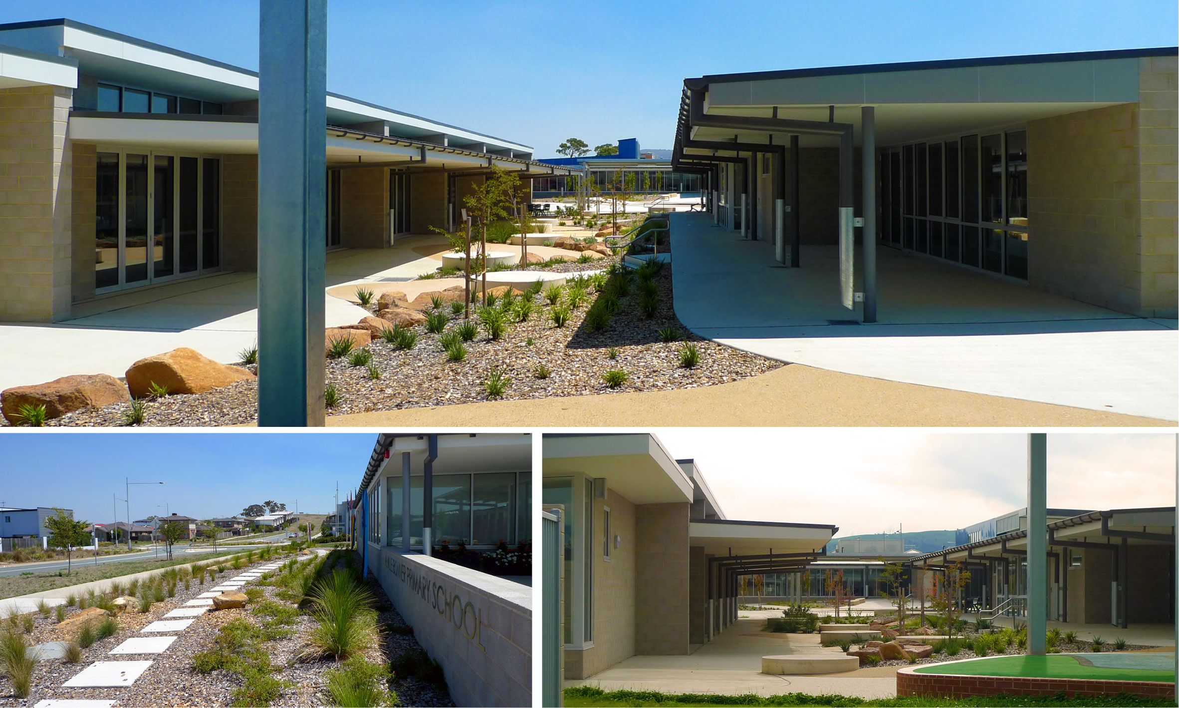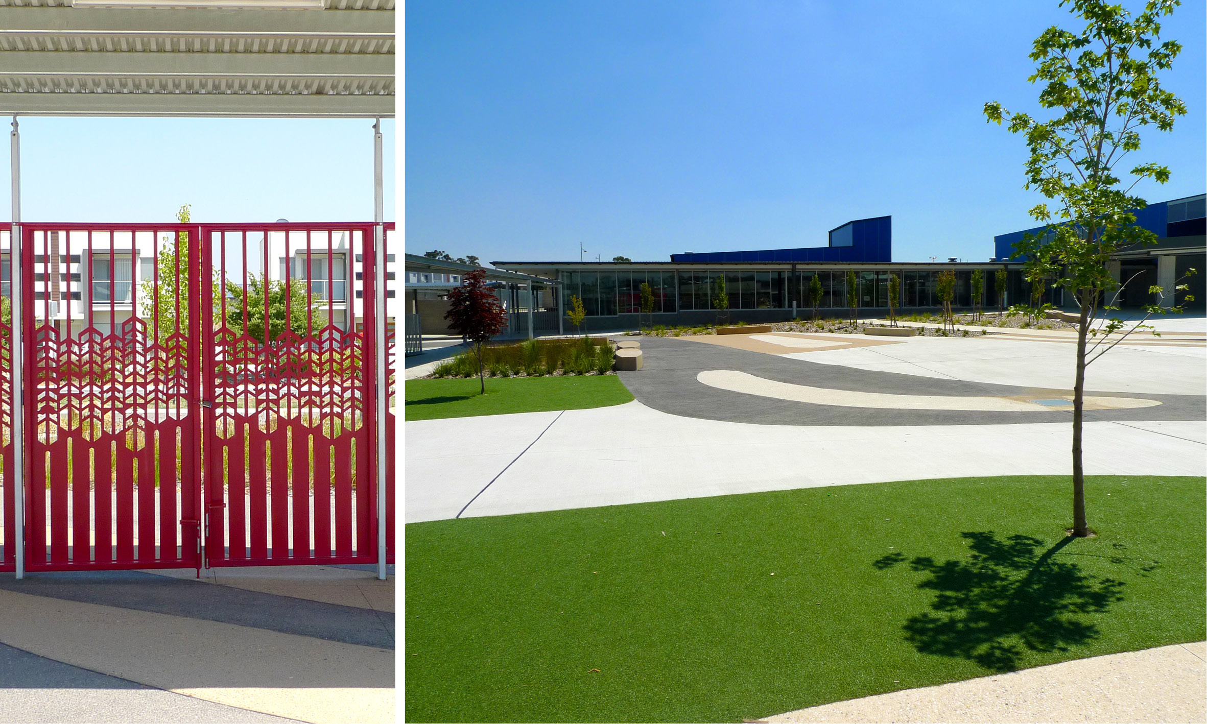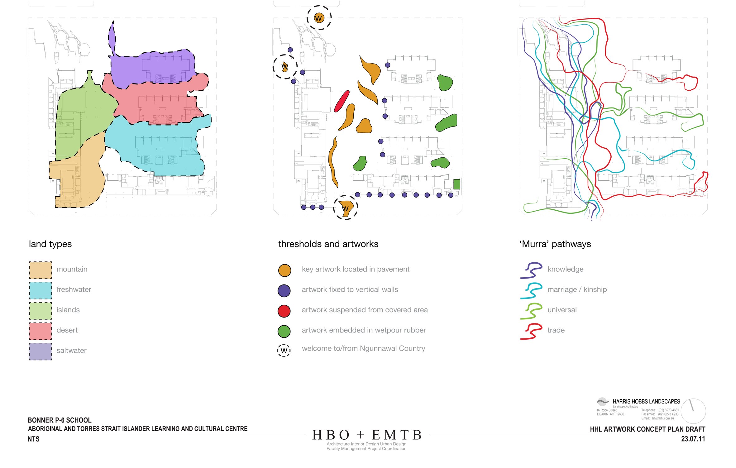 Extensive consultation was undertaken with a range of Aboriginal and Torres Strait Islander groups and education consultants. An artwork master plan was developed by the design team, including the architect landscape architect, art consultants, client and key Aboriginal and Torres Strait Islander representatives to allow for artworks to be embedded within the fabric of the buildings and landscape. Refer to entrance gates, softfall and stone placement for initial artworks.