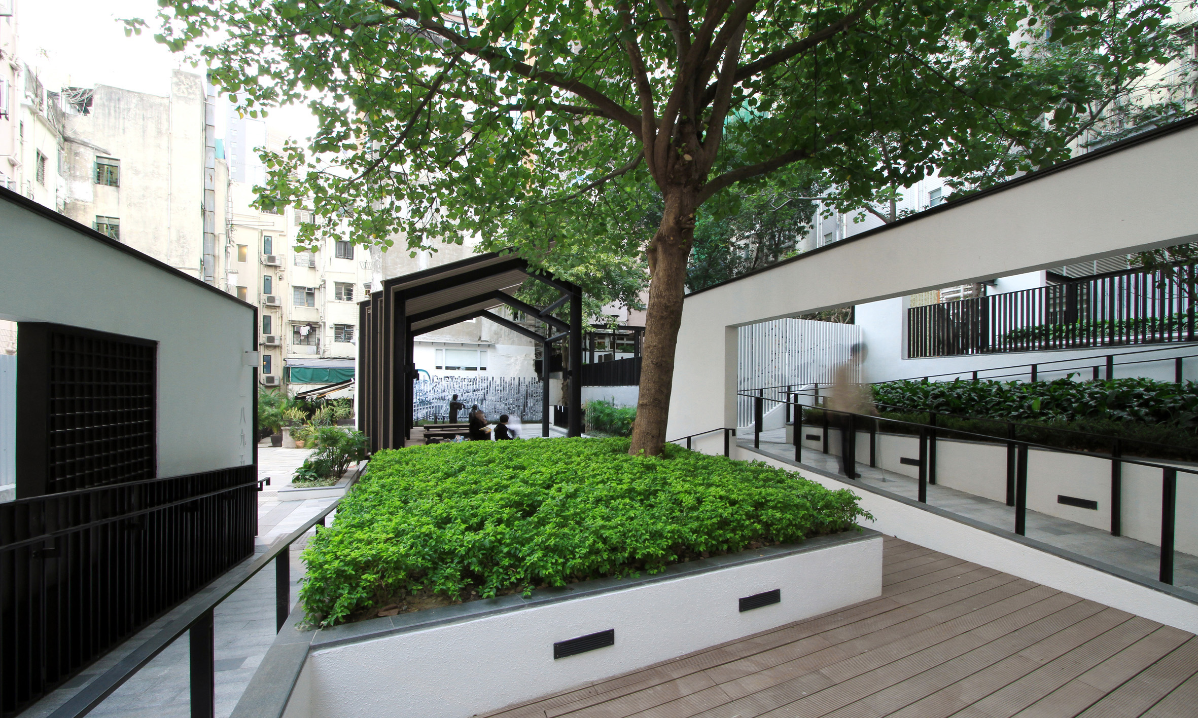 Another big challenge was to retain all of the existing trees during construction, within the small and enclosed site. The trees are preserved to demonstrate the importance of environmental conservation in rapid urban renewal and development. Design is adjusted in according to the trees and site condition throughout all stages of design and construction. An old residential well was also discovered and retained. Together with the new trees, the Park achieves 70% canopy coverage. Thus, tree preservation and the awareness of the historical and cultural aspects have taken a crucial role in the Project.