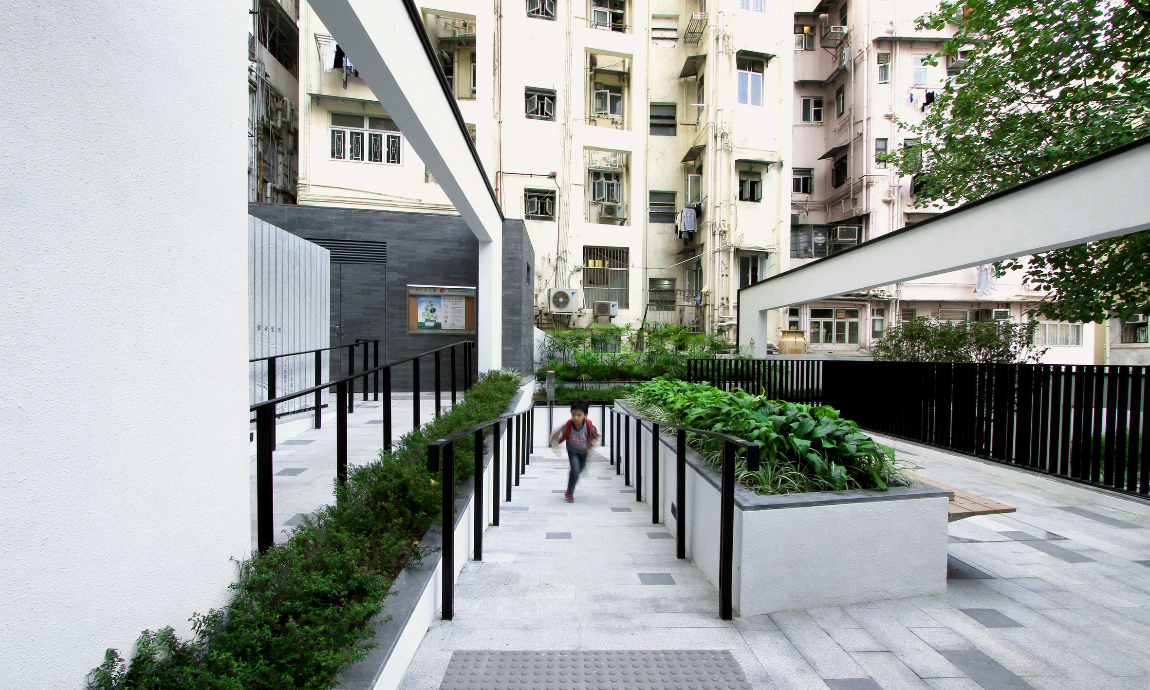 The concept calls for a variety of exhibition items and spaces to create a clear address for the tangible and intangible heritage and, simultaneously, to give the entire space a distinct identity, to provide a sequential route for visitors to experience the history and to enhance the characters of Pak Tsz Lane laneway. At the same time, laneway entrances, enclosed open space and the terraced walkways form a unique space for enjoyment, recreational and communal aspiration. Users are encouraged to stay and to appreciate the history, and the Park also brings both locals and tourists to experience the rich historical and cultural aspects of Hong Kong.