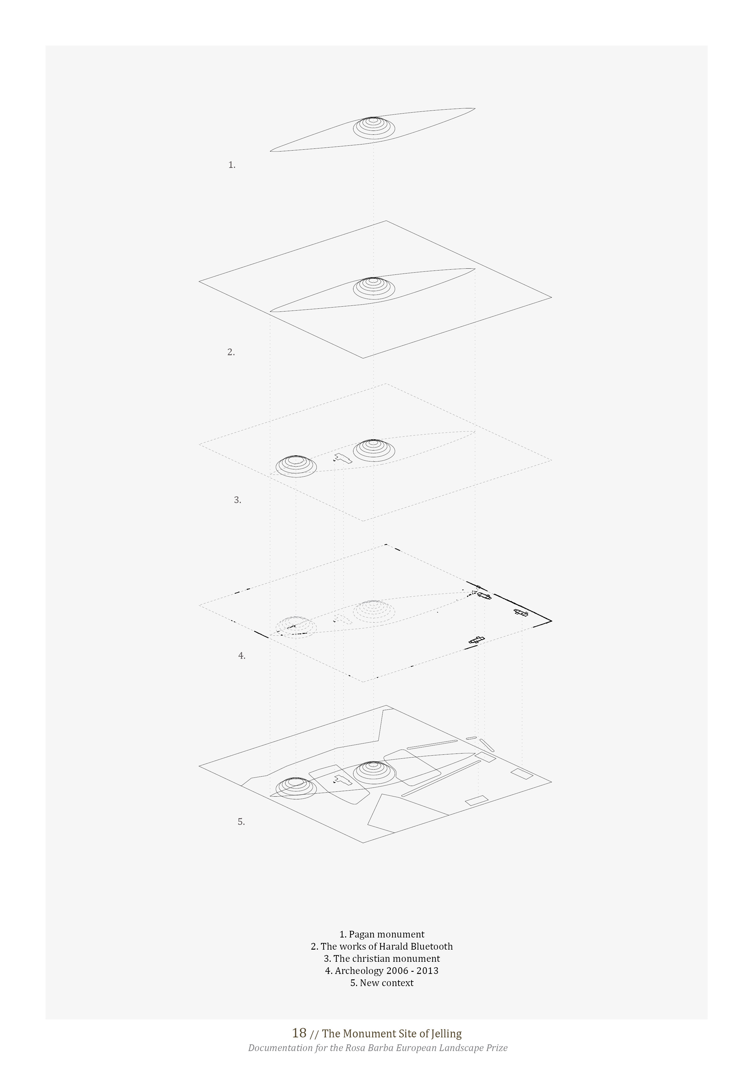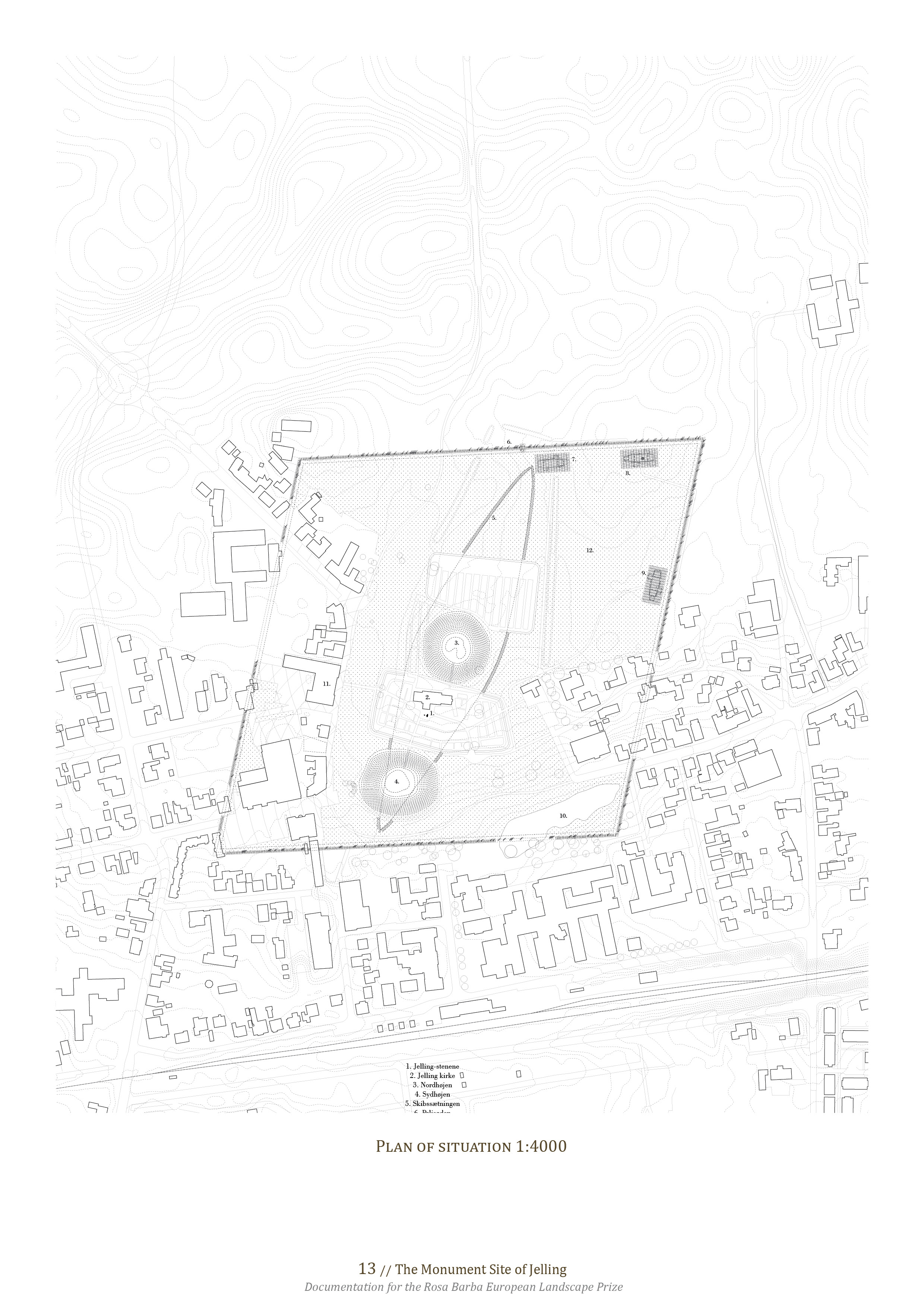 Through a simple landscape modeling, this project for the Monument Site is based on an intention to identify and convey these new findings and the existing world heritage - including Thyrashøj, Gormshøj, The Church of Jelling and the Jelling Stones.
