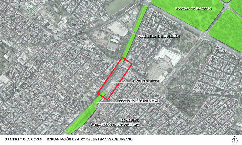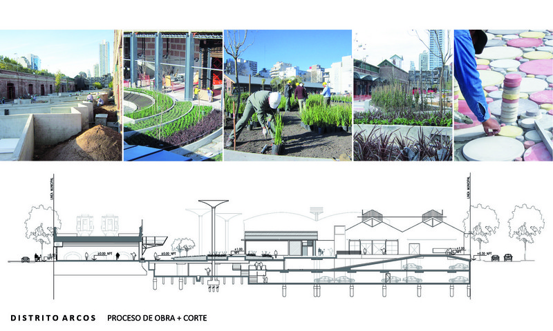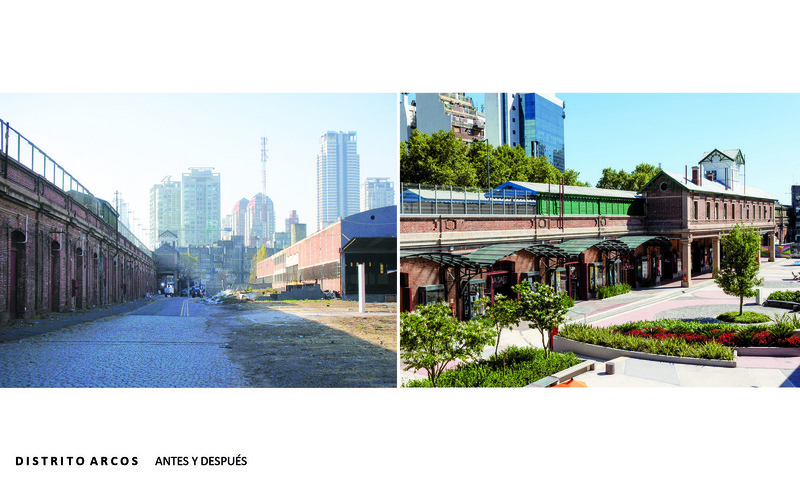 El paseo de compras Distrito Arcos devuelve un espacio de carácter público, con lugares de encuentro al aire libre, a un área central de la ciudad. Anteriormente un complejo de bodegas y galpones ferroviarios, abandonado durante años, el sitio es parte de uno de los centros de trasbordo más importantes de la ciudad de Buenos Aires. De su reconversión y revitalización resulta un nuevo espacio verde en un entorno de instalaciones históricas, con gran afluencia de público.