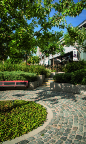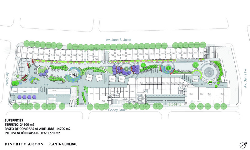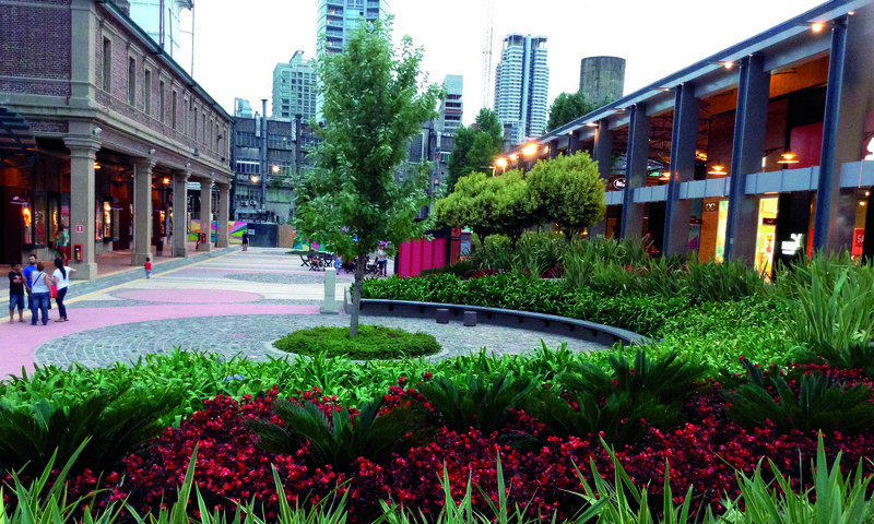Es el primer paseo de compras al aire libre en la ciudad, por lo cual el proyecto de paisaje tiene gran protagonismo: colores, texturas, floraciones y follajes diversos.