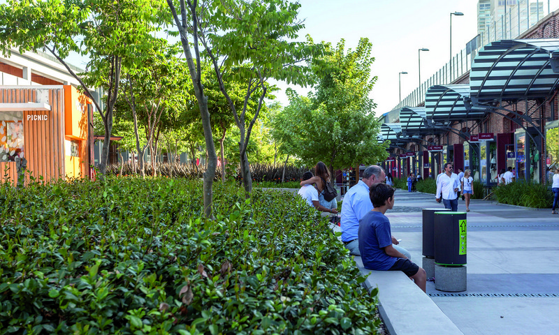 La altura de la plantación prioriza las vistas desde un lado al otro del paseo, hacia las tiendas.